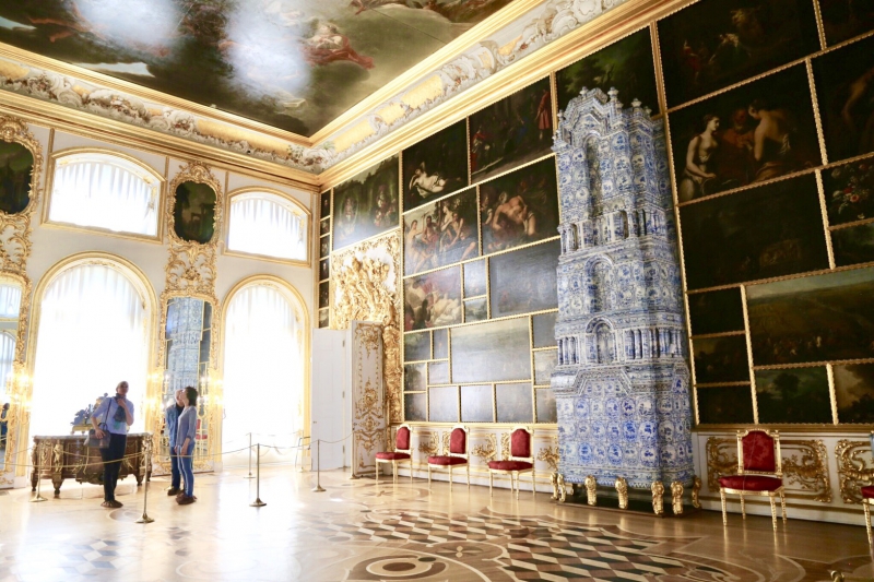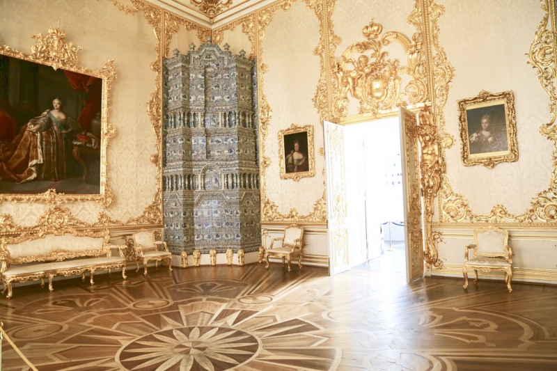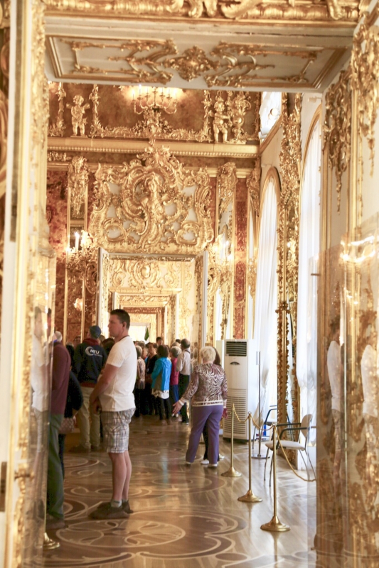 ห้องอำพัน ถือว่าเป็นหนึ่งไฮไลท์ที่ห้ามพลาด เพราะที่ห้องแห่งนี้รังสรรค์ขึ้นระหว่างช่างฝีมือชาวเยอรมัน และชาวรัสเซีย การก่อสร้างห้องเริ่มขึ้นในปี ค.ศ. 1701 สร้างขึ้นตามบัญชาของกษัตริย์ฟรีดริช วิลเฮล์ม ที่ 1 และได้มอบให้แก่ พระเจ้าซาร์ปีเตอร์มหาราชแห่งรัสเซีย ในปี 1716 เพื่อแสดงถึงมิตรภาพที่ทางโซเวียตเป็นพันธมิตร ห้องนี้ได้รับการตกแต่งอย่างสวยงาม ตั้งแต่ผนังถึงเพดานทำด้วยอำพันทั้งหมด ตกแต่งด้วยทองคำเปลว และกระจกอย่างวิจิตรงดงาม จนเล่าลือกันว่านี่คือ สิ่งมหัศจรรย์ที่ 8 ของโลก
